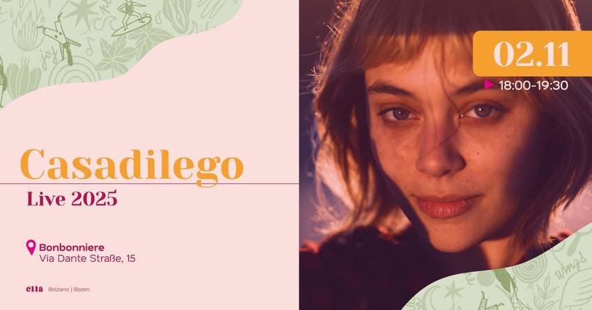 Der Tag endet mit einem Konzert von Casadilego, Künstlername von Elisa Coclite, Gewinnerin der 14. Ausgabe von X Factor Italia (2020). Als Künstlerin mit außergewöhnlicher Sensibilität verbindet Casadilego raffinierte Stimmforschung, tiefgründige Texte und eine musikalische Vision, die sich zwischen zeitgenössischem Pop, Soul und akustischen Experimenten bewegt.