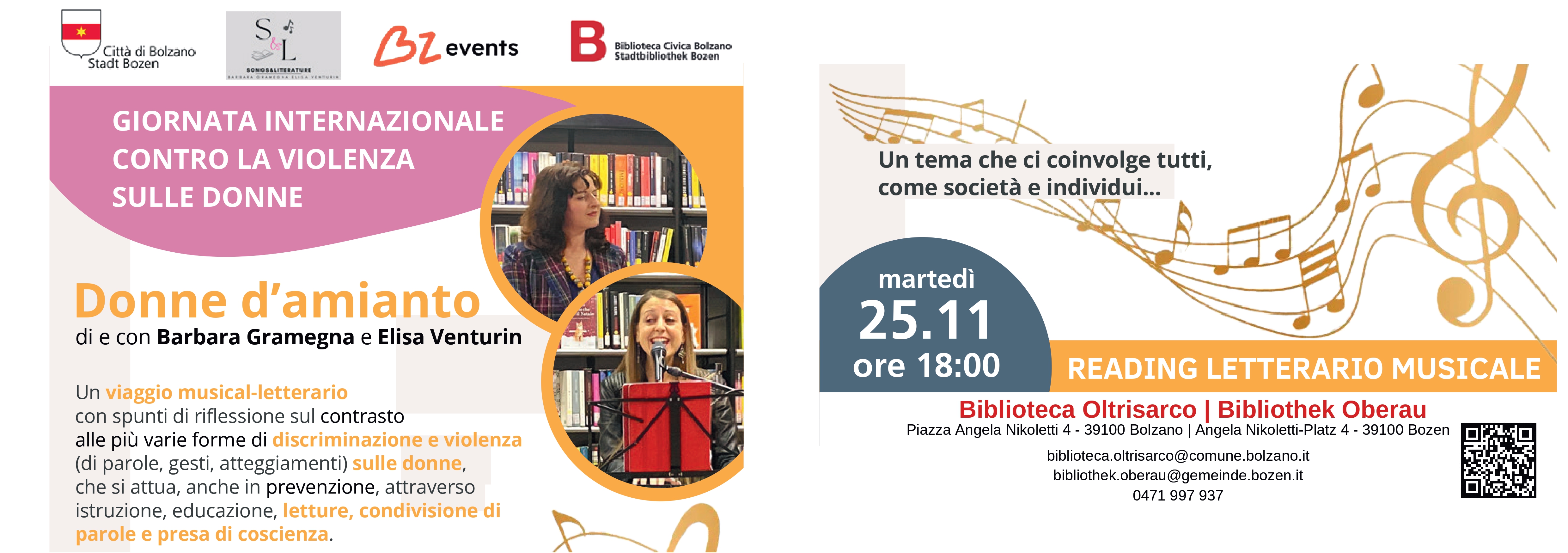 Eine musikalisch-literarische Reise mit Denkanstößen zum Kampf gegen die unterschiedlichsten Formen der Diskriminierung und Gewalt (in Worten, Gesten, Verhaltensweisen) gegenüber Frauen, die auch präventiv durch Aufklärung, Bildung, Lesen, den Austausch von Worten und Bewusstseinsbildung umgesetzt wird.