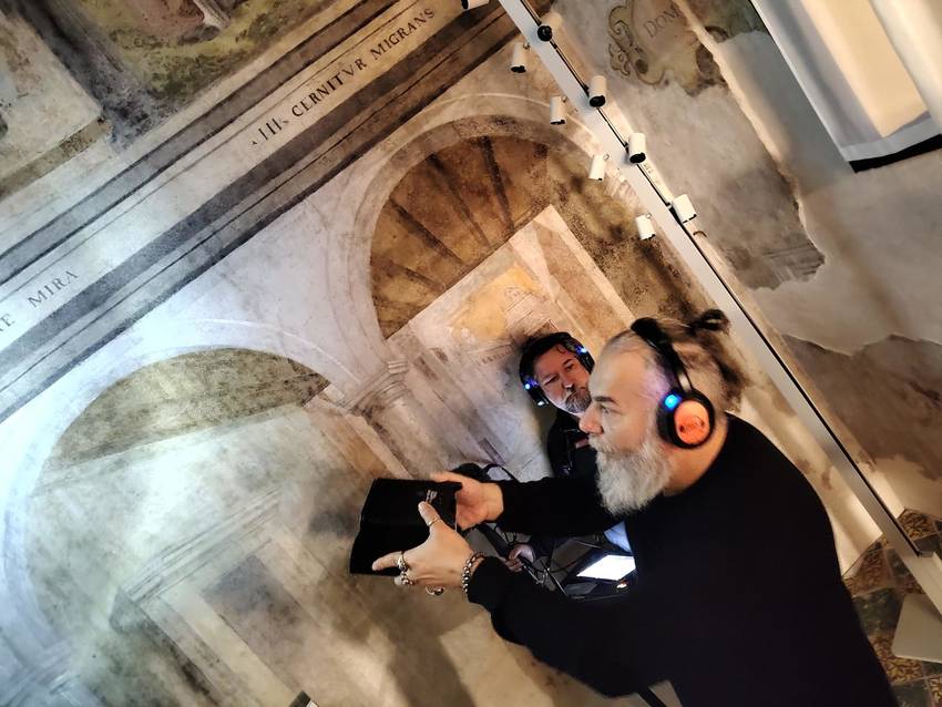 Musikalische, literarische und immersive Reise in eine ferne Zukunft, in der die Menschheit aufgrund des Klimawandels ausgestorben ist. Mit Miscele d‘Aria Factory. Francesco AGO Dallago (Bass), Carlo Casillo (Gitarre), Mariano de Tassis (Stim me), Emiliano Tamanini (Trompete und Muscheln). Sensorisches Erlebnis mit kabellosen Kopfhörern, kuratiert von Carlo Casillo (musikalisches Arrangement), Mariano de Tassis (Regie), Luigi Zoppello (Text & Dramaturgie)