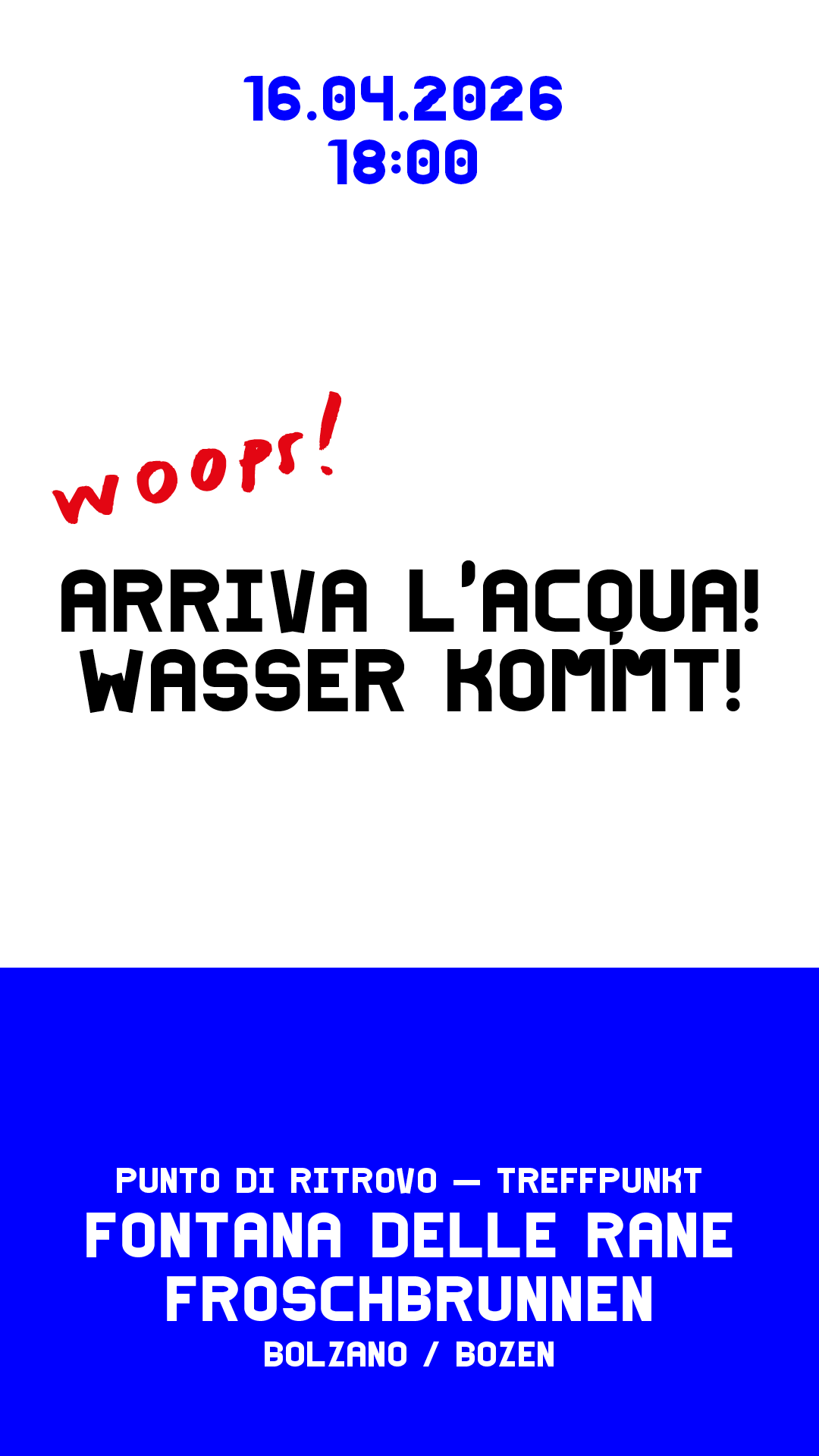 Zum Kalender hinzufügen 2026-04-16 11:36:00 2026-04-16 12:36:00 Europe/Rome Wasser kommt!