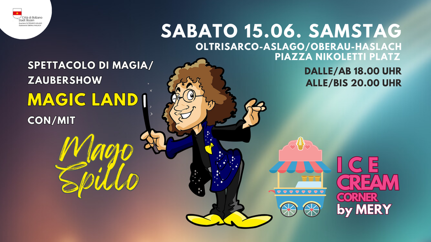 Zum Kalender hinzufügen 2024-06-15 18:00:00 2024-06-15 20:00:00 Europe/Rome Zaubershow "Magic Land" mit Mago Spillo