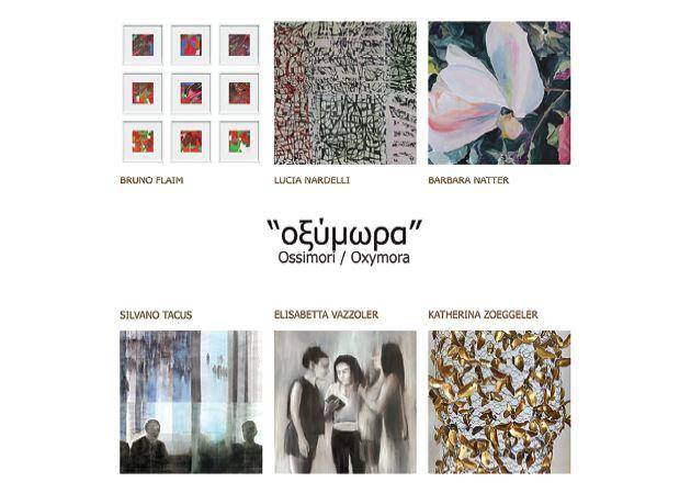 Auch Bruno Flaim hat ein Werk zum Oxymoron „Originalkopie“ geschaffen, um die Zufälligkeit des Konzepts selbst und die Austauschbarkeit zu betonen, die durch den Einsatz des Digitalen möglich wird. So entsteht in der Abfolge von Öl- und Digitalbildern eine persönliche Art, Kontraste auszudrücken. Die leuchtenden Farben und die abstrakten, zarten und fließenden Formen, die Auflösung in Details und die Neuzusammensetzung des Ganzen sind eine passende Antwort auf die Fragen des Konzepts. Die Transparenz der Aquarelle von Silvano Tacus führt uns zum Oxymoron „Gemeinsam allein“ und versinnbildlicht es durch körperlose Figuren im Gegenlicht, nebeneinander gestellt und zugleich in Tafeln geteilt, isoliert von der Gemeinschaft, dargestellt durch Gruppen kleiner, nur schwach skizzierter Figuren. Mann und Frau stehen einander gegenüber und bilden doch ein Paar, ein stummes Zwiegespräch unbewegter Silhouetten.