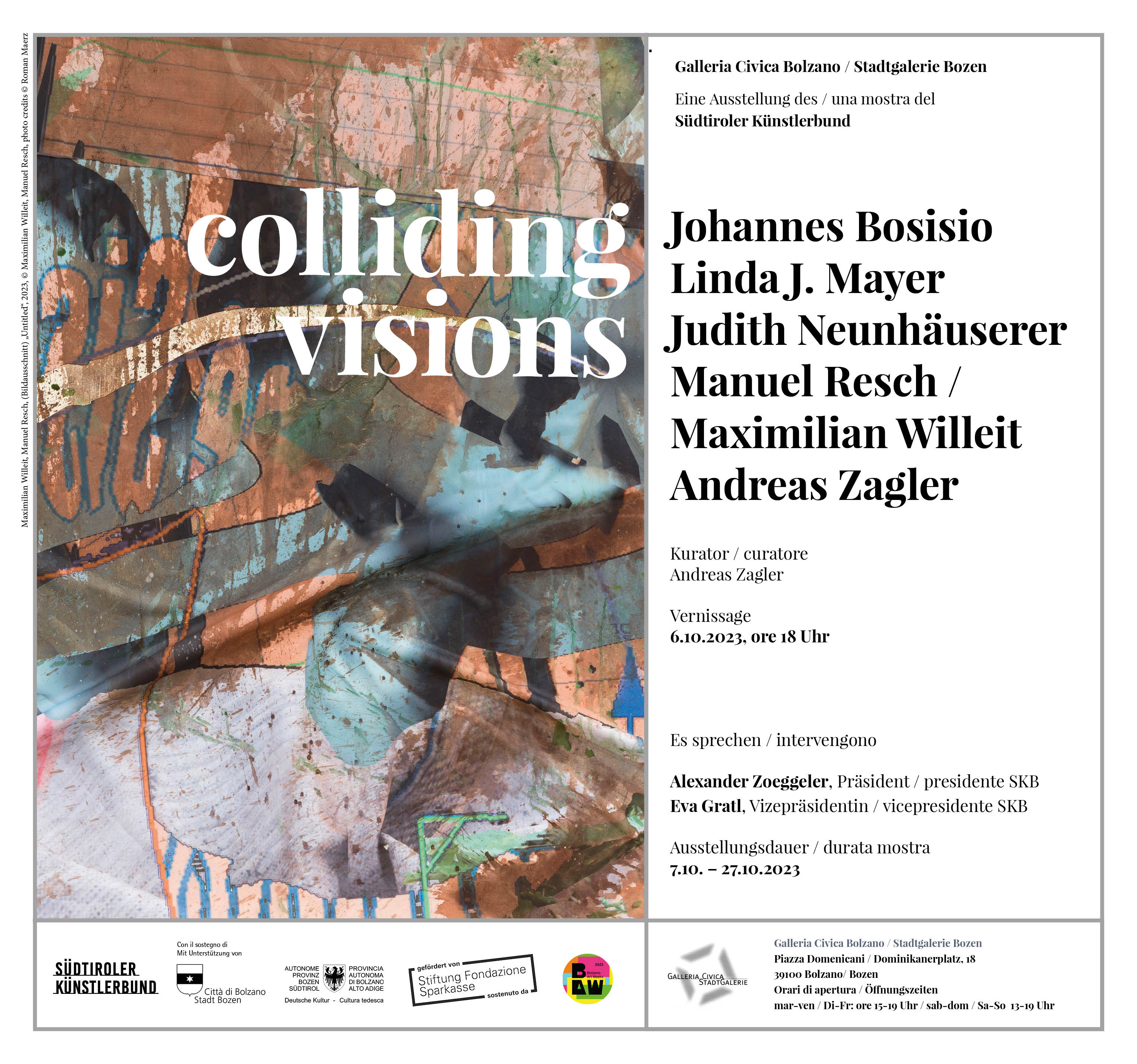 Stilistische Vielfalt und ein gemeinsamer Nenner. Der Künstler Andreas Zagler führt als Kurator in der Ausstellung unterschiedliche Positionen von Künstler*innen zusammen, die fern von Südtirol in den Metropolen Europas ihren künstlerischen Lebensmittelpunkt haben und zu den jungen Mitgliedern des Südtiroler Künstlerbundes gehören. Dem Künstler-Kurator ging es dabei um eine gemeinsame Idee, nicht um eine Gruppenausstellung, sondern um das Werk, das als persönliche Aussage formuliert wird. So ergibt sich bei aller Unterschiedlichkeit der künstlerischen Positionen eine wahlverwandte Nähe.