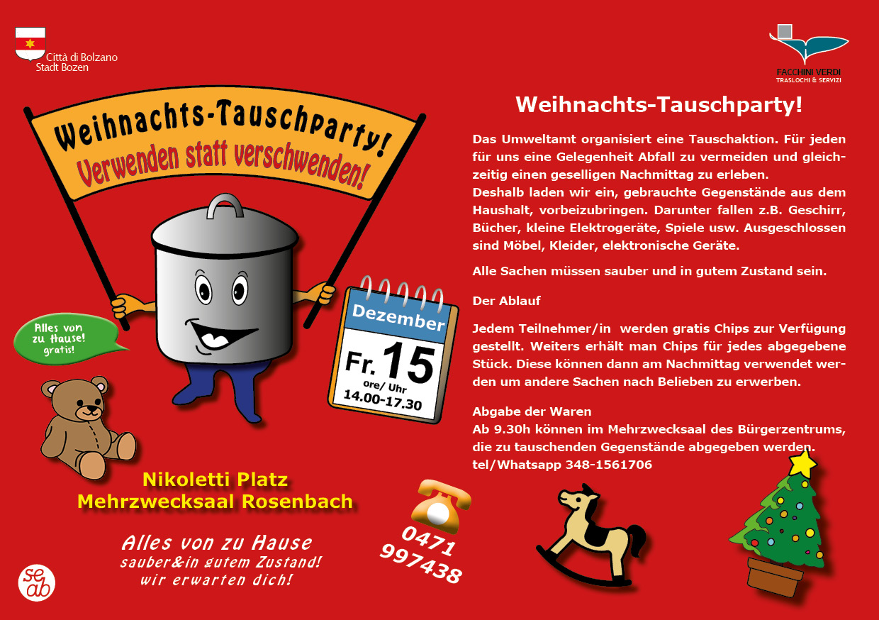 Ab 9:30 Uhr können im Mehrzwecksaal des Bürgerzentrums, die zu tauschenden Gegenstände abgegeben werden.